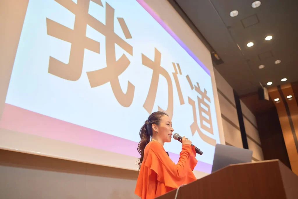 1つ目のセミナー「日本一のデザインスクール久保なつ美校長のORIGIN」では、書籍にちなんで、根性なしと言われていた自身の過去から卒業生数2,500人(現在7月時点、3,000名を突破)のスクール校長になるまでの、軌跡を紹介。