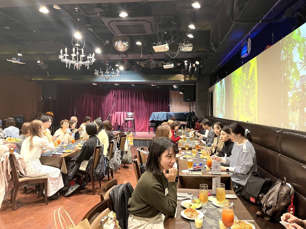 結婚式の2次会やミニライブなどでも使われるちょっぴり大人な雰囲気のレストランを貸し切って行いました。(いつもこの会場にお世話になってます!^^)