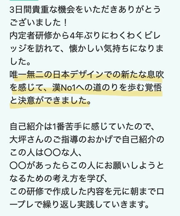 それを洗脳だと捉える人もいるかもしれないですが、仮に洗脳だとしても、少なくとも夢も希望もなくプラプラしていた大学時代の私よりずっと毎日幸せだし、成長できているし、お客さんからお礼を言ってもらうことも多いので、良いかな、と。