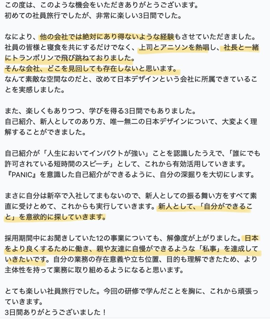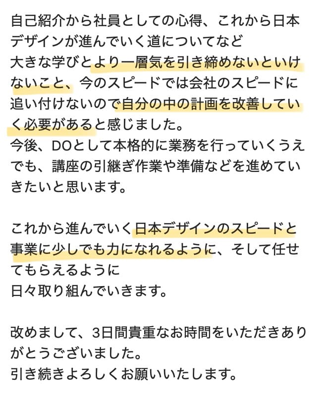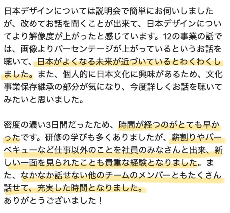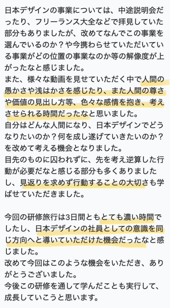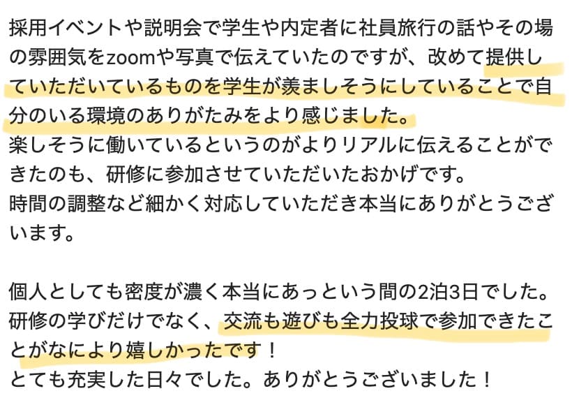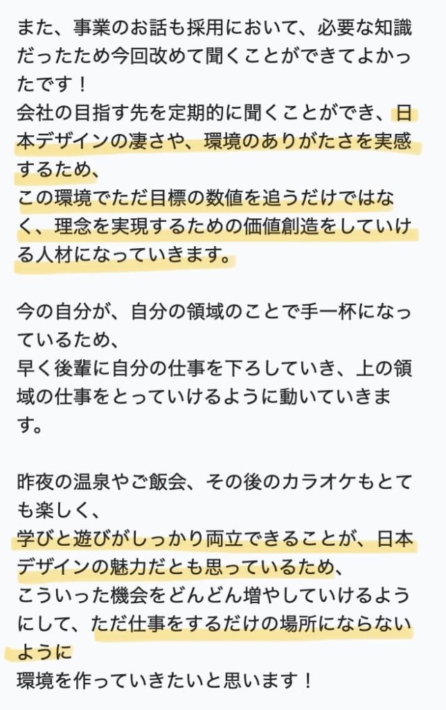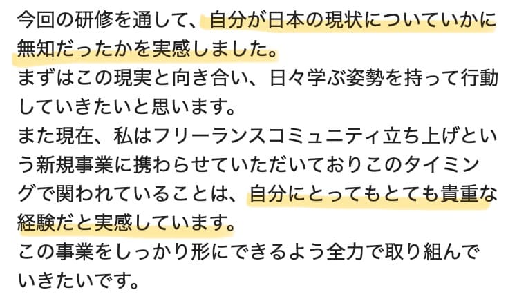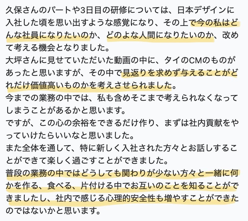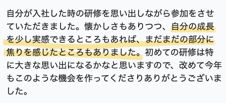 他の社員の感想も一部シェアします。みんないいこと書きすぎ!