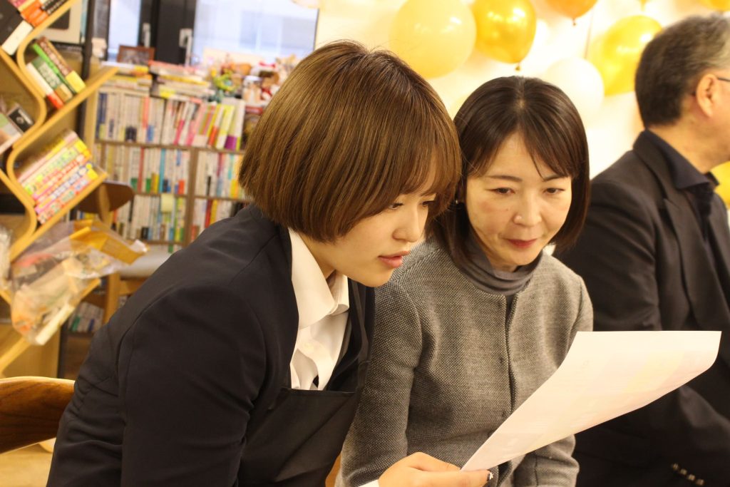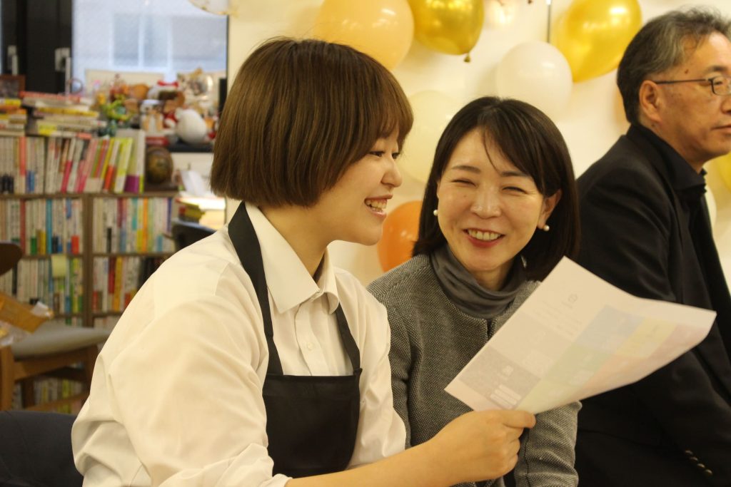 代表である大坪さん、そして先輩社員が見守る中、言葉一つひとつから伝わってくるご両親への想いに、私もつい目がうるうるしてしまいました……。