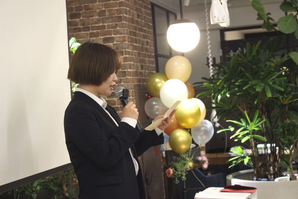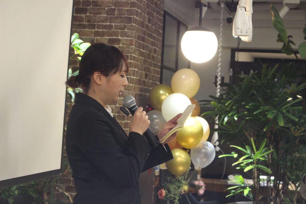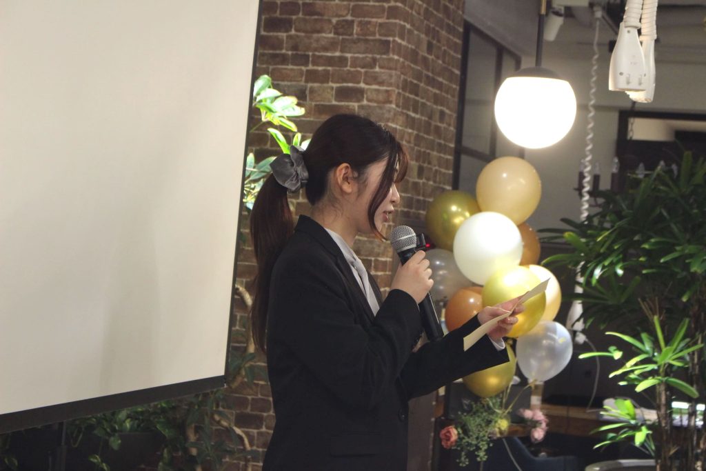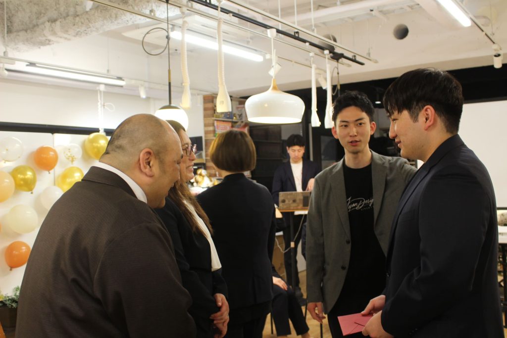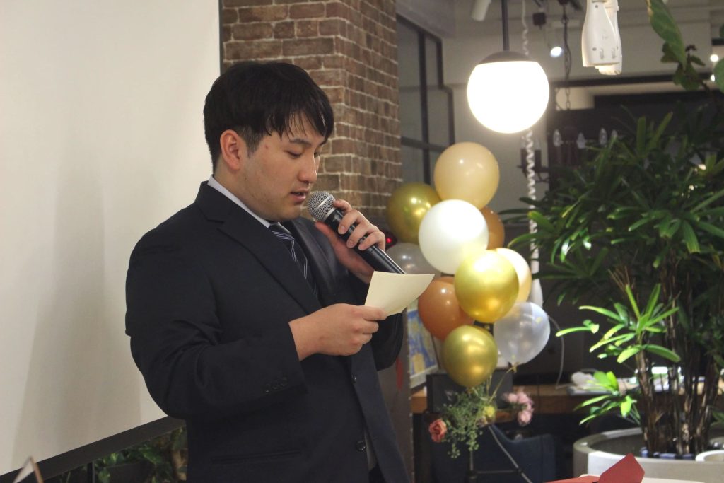 そして一次会として最後に、日本デザインの代表である大坪さんから、新卒4名とその親御さんに向けてメッセージがありました。