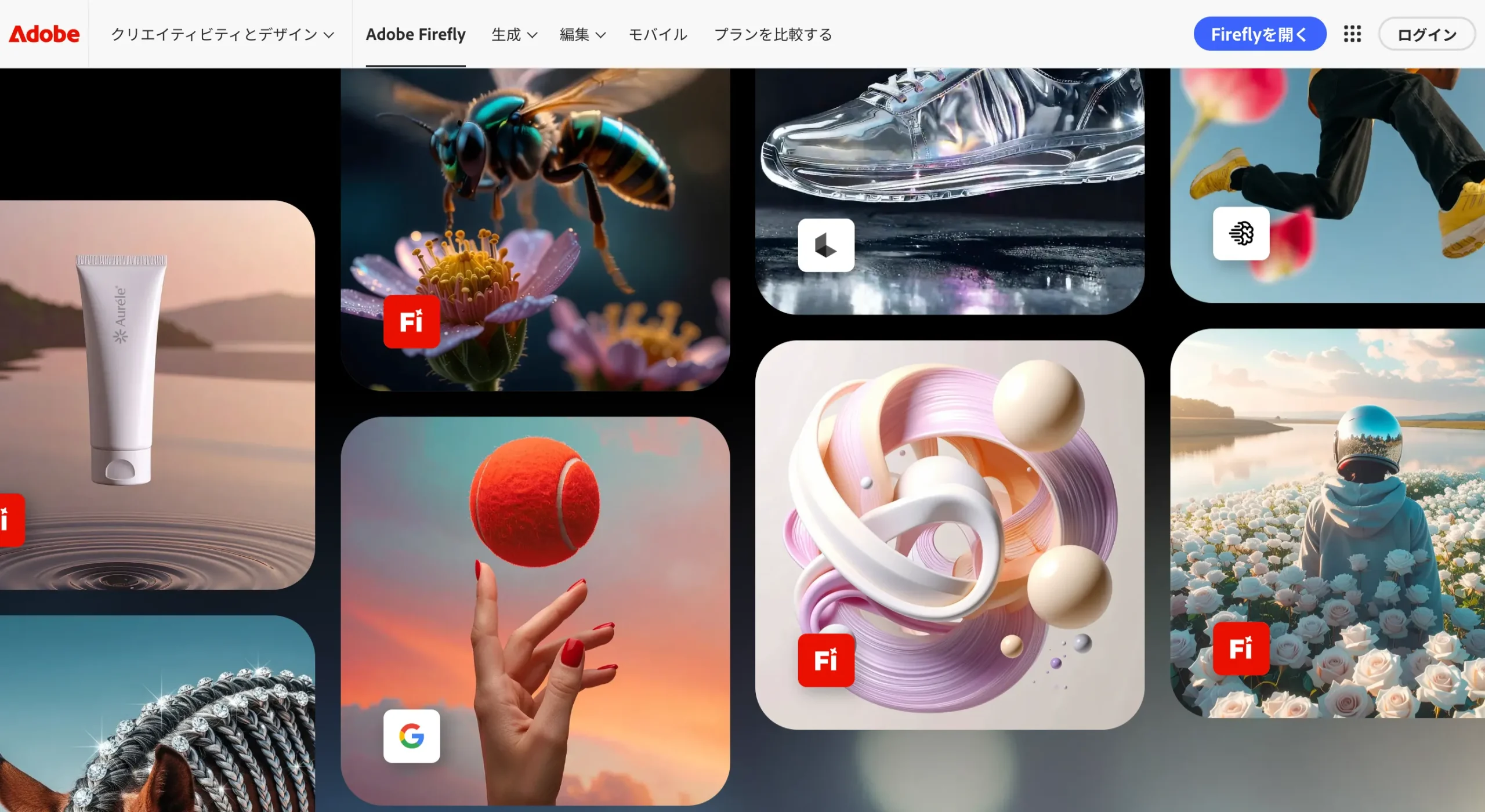 - 映像やビジュアル制作に特化した生成AIツールのサイトです。AI生成の映像表現を大胆に使い、未来的でクリエイティブな世界観を強く印象づけています。