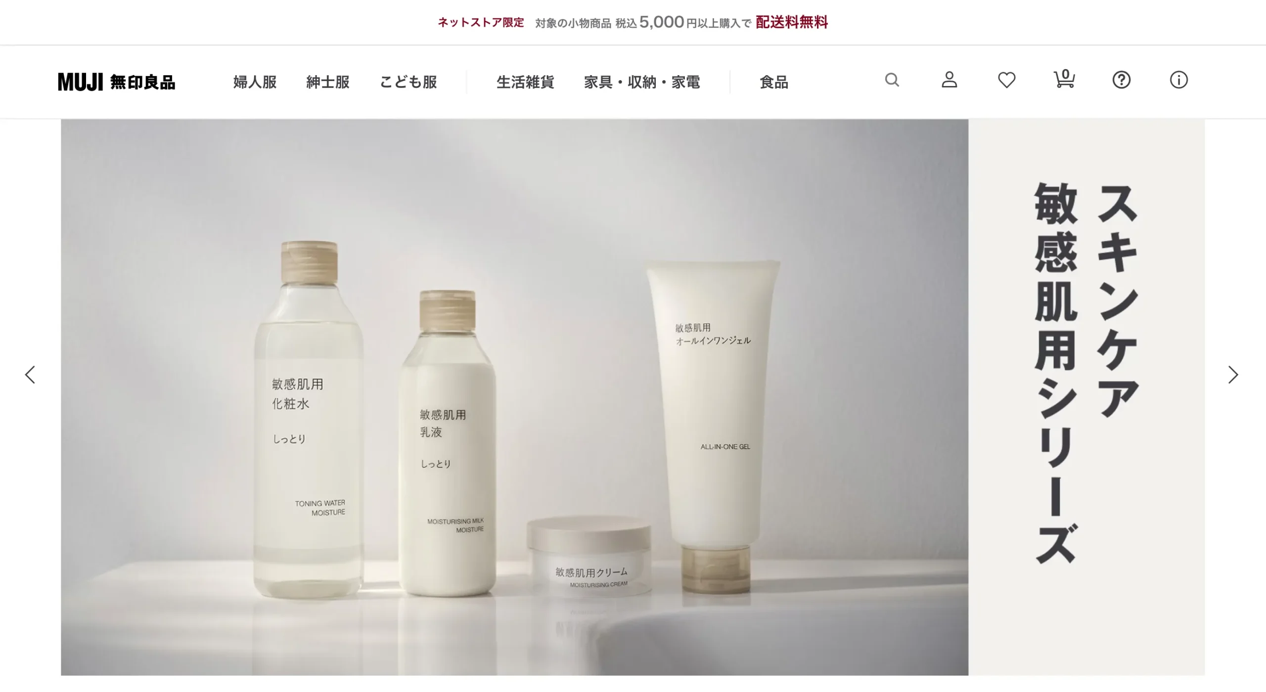 | ミニマリズムなデザイン | 装飾を減らし、余白と整理で伝えたい情報を目立たせます。読み込みが軽くなりやすいのも利点です。 | ・無印良品 ・治一郎 |