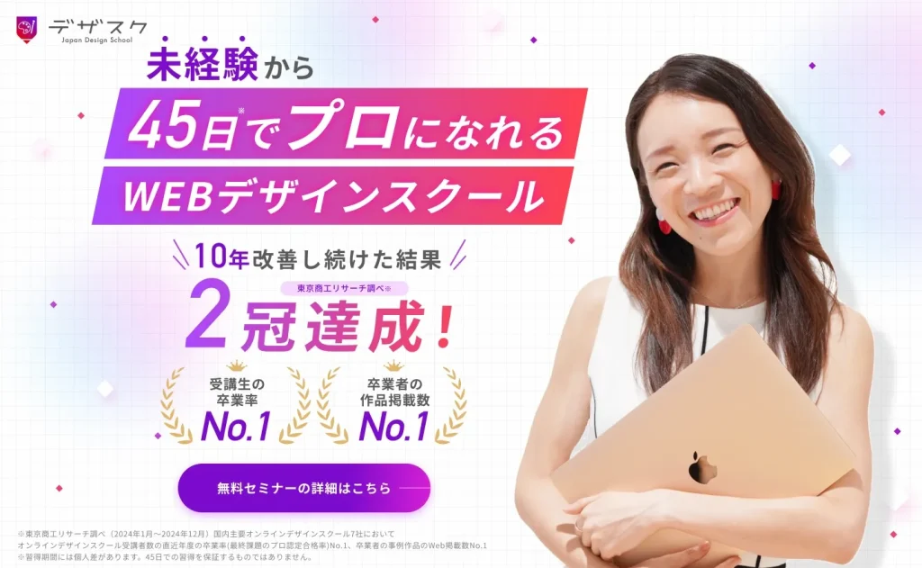当メディアを運営する日本デザインスクール(デザスク)は、これまで4,000人のWEBデザイン初心者をプロへと育成し、副業でも成功へと導いてきました。本記事では、その実績に基づき、WEBデザイン副業の始め方を徹底的に解説いたします。