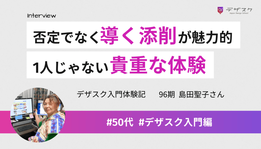 別にデザインとか全然関係ないから、「こういうのでほんまにいいのかな」っていうのはそもそもあって。久保さんの動画とか見たら、きっちり添削もやってるし、しっかり教えてもらえるっていうのがすごい魅力でしたね。そういうふうに添削を受けたこともなくて。