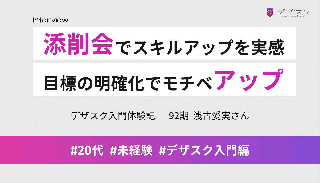 スクールは、一か所違うところの最初のセミナーみたいなのに参加したんですけど、やっぱりデザスクの方がいいなと思ってデザスクに。