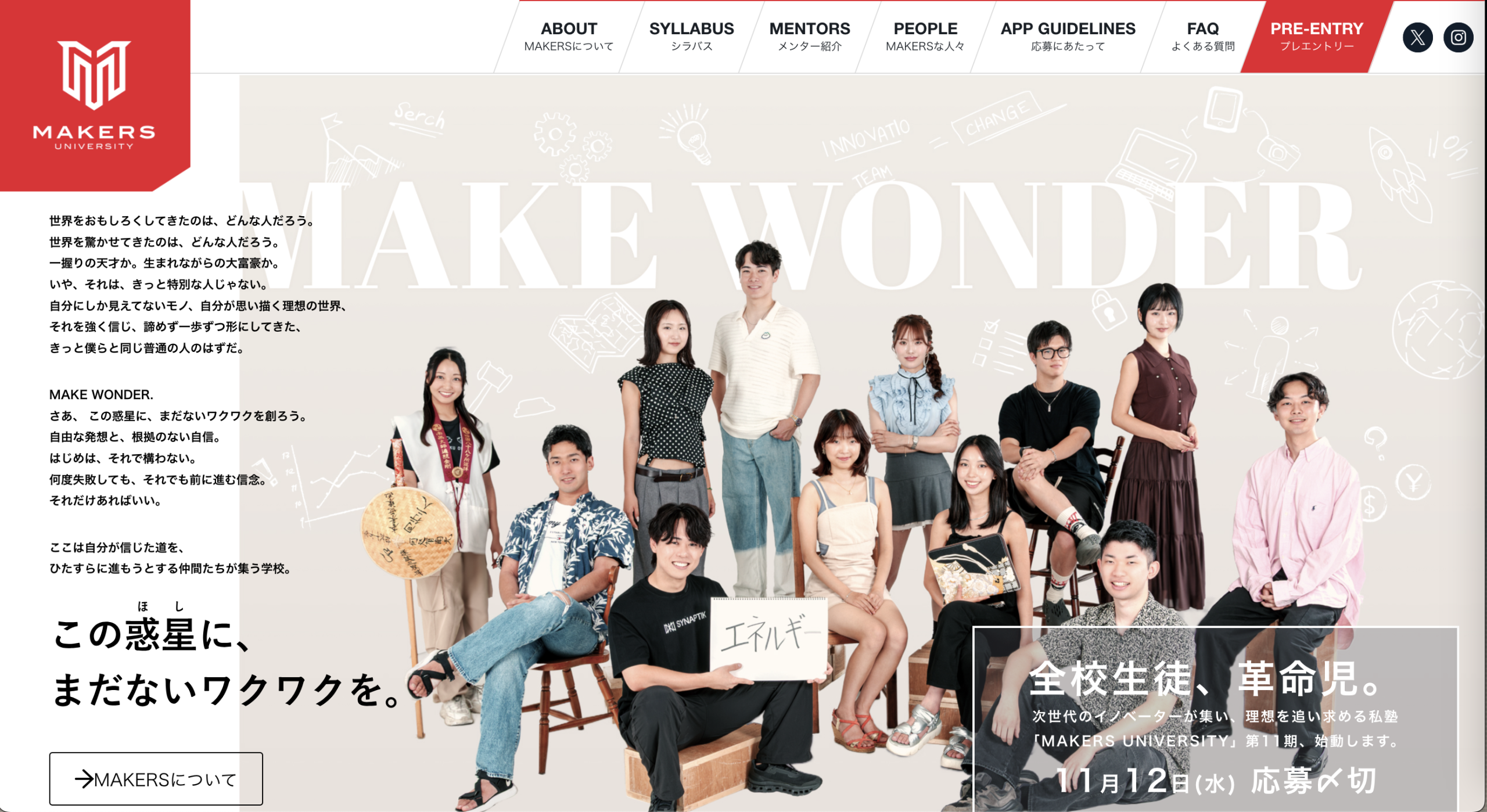 メーカーズユニバーシティは、選抜された学生が集まる「学生向け起業スクール」です。