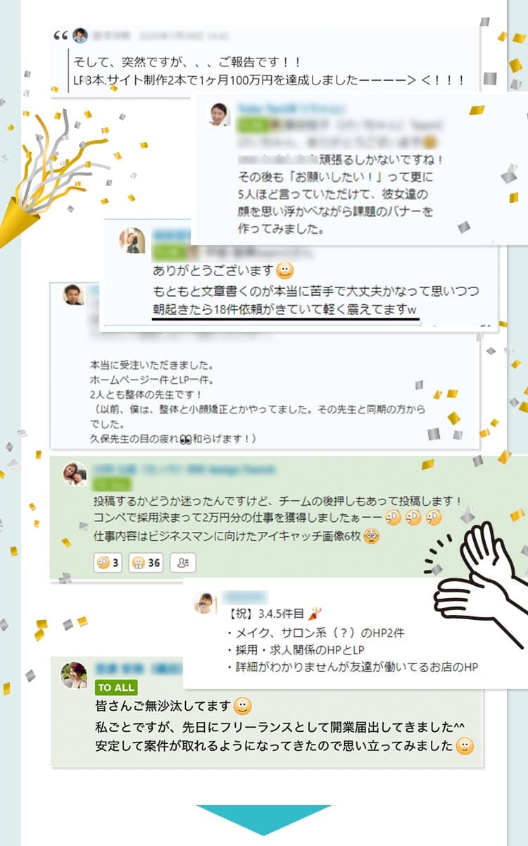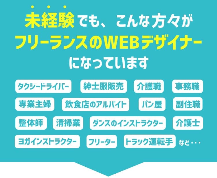 今回、無料WEBレッスンを公開する弊社は、これまで未経験から1600名以上の方をWEBデザイナーとして育てました。もともとは、落ちこぼれ社員を3日間で即戦力に変えなければいけない危機感から生まれた方法でした。この方法を実践した方は、短期間で下記のような成果をあげています。