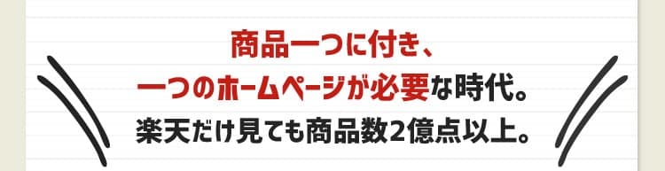 商品やサービス一つに付き1ページ必要になりますが、楽天だけを見ても、約2億点の商品数があります。
